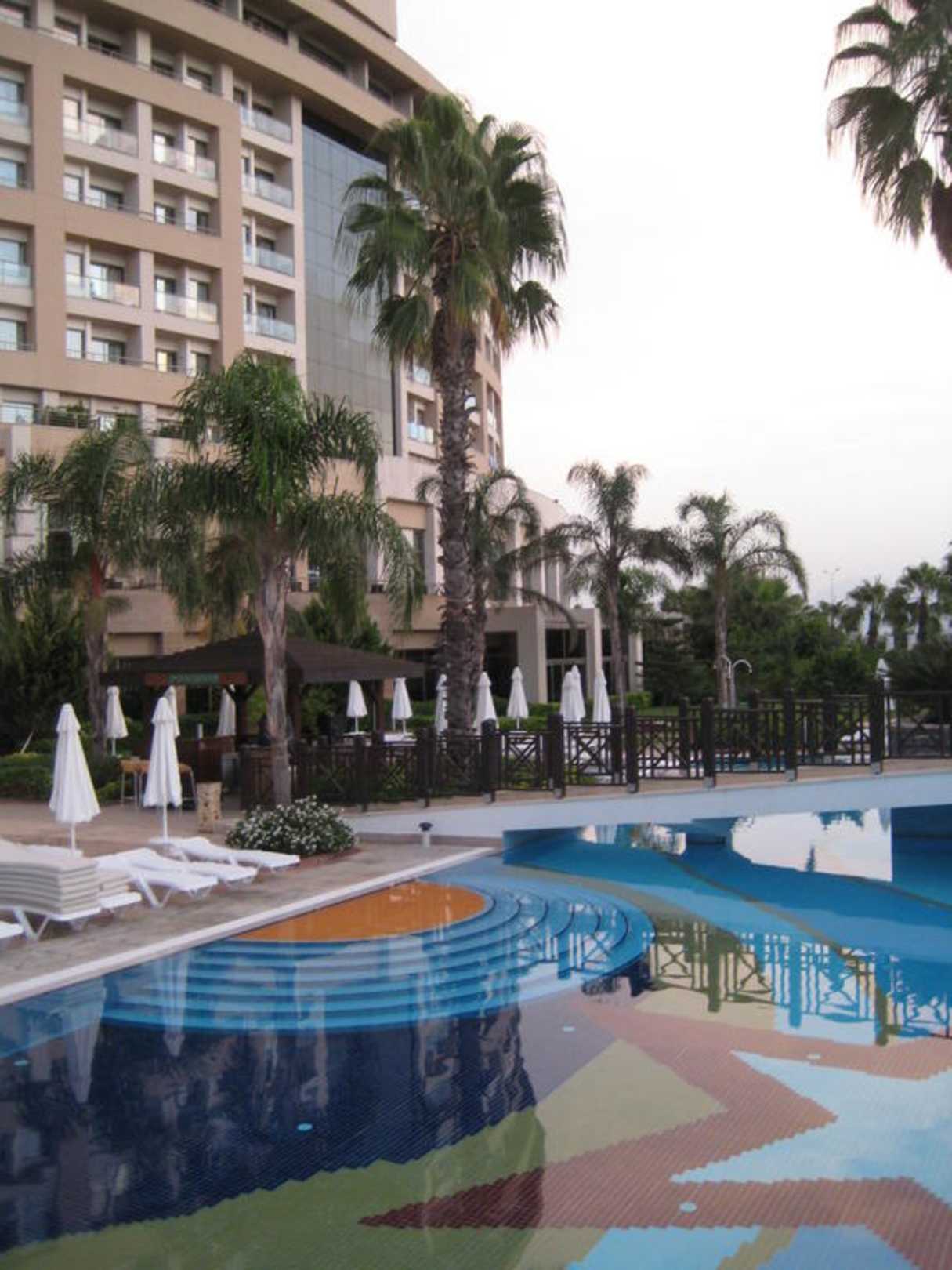 Teil des Pools & Hotelansicht