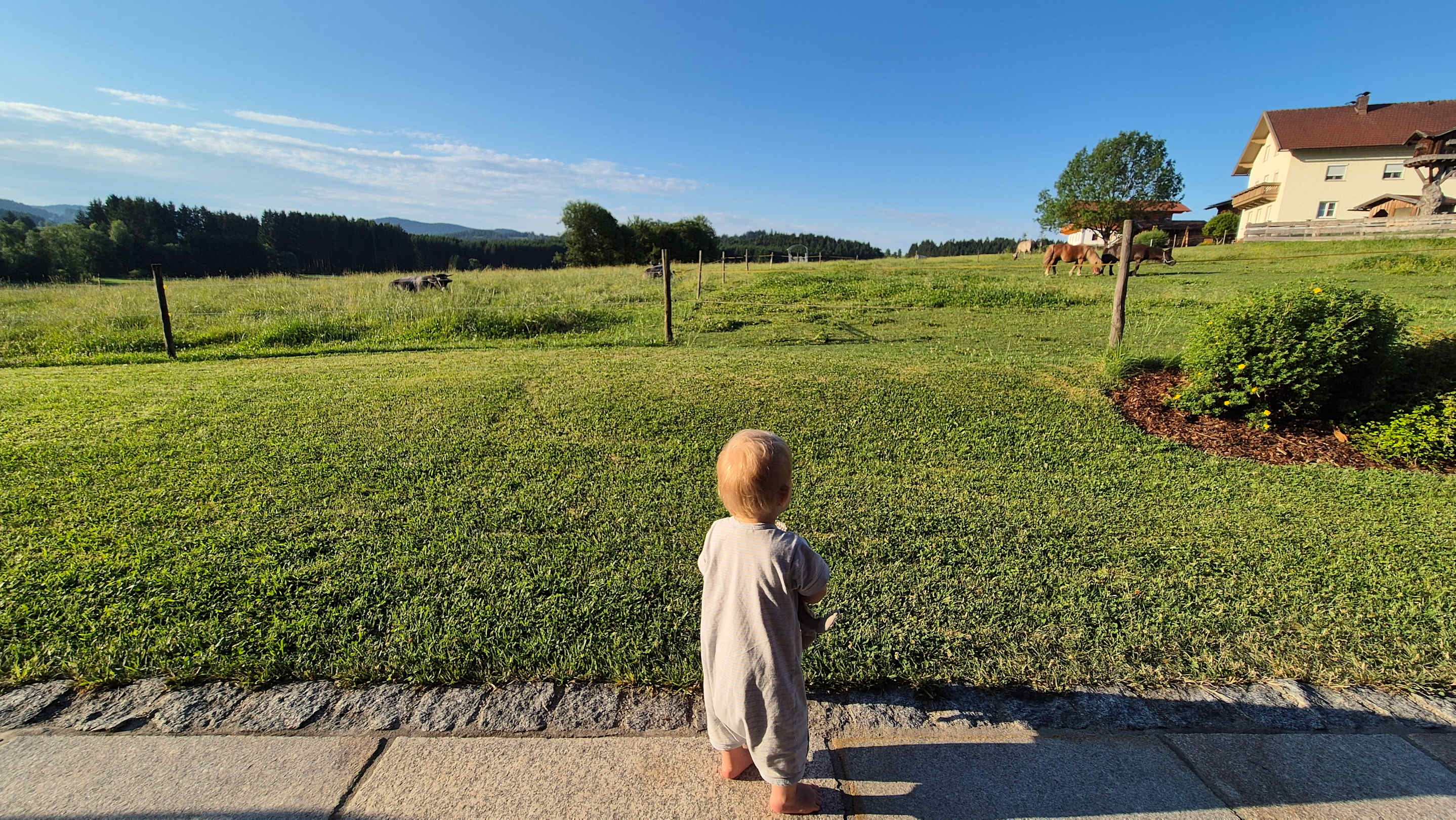 Morgentlicher Blick auf die Kuh- & Pferdeweide