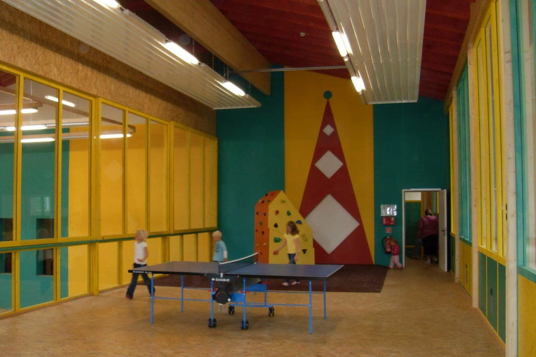 Tischtennisplatte und Kletterfelsen