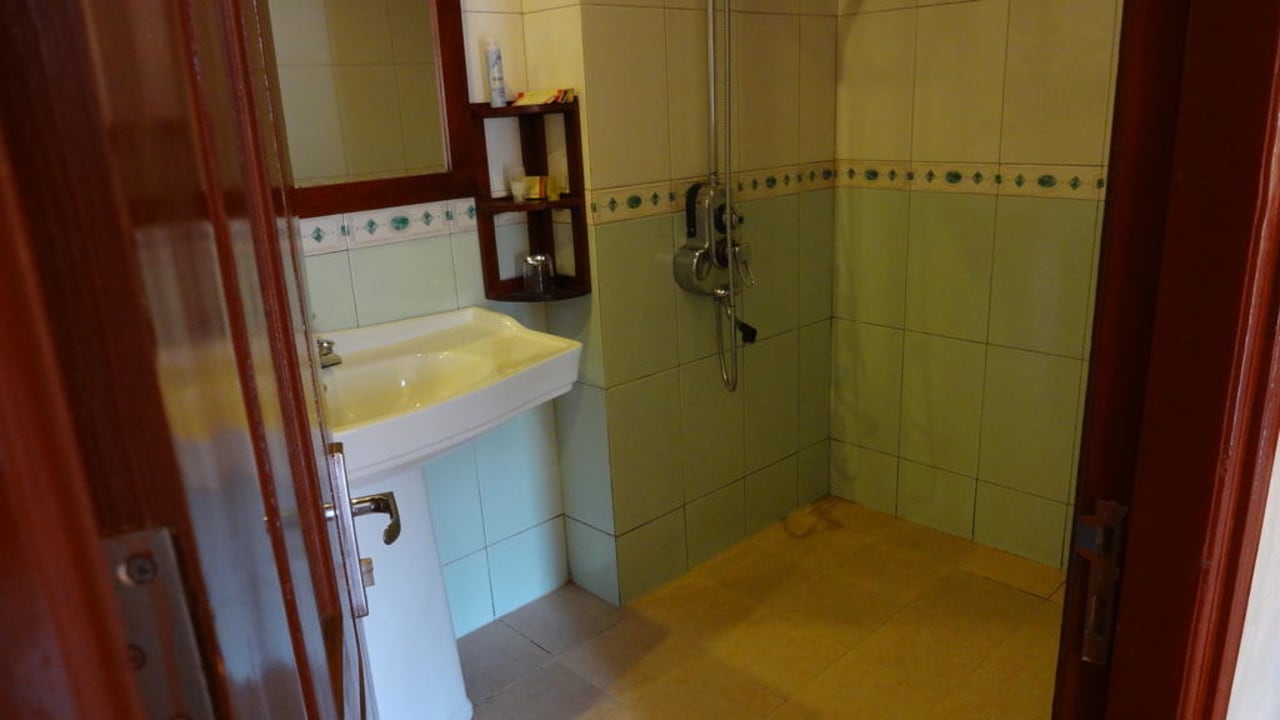 Wasser läuft beim Duschen über den gesamten Boden zur Toilette hin