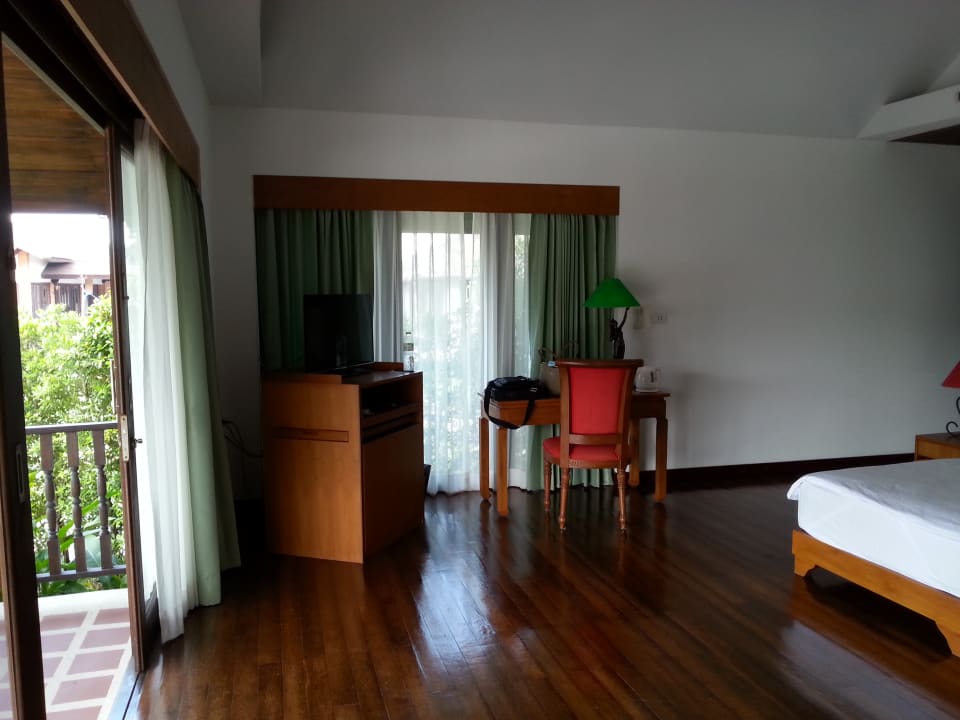 Schreibtisch, Minibar und TV