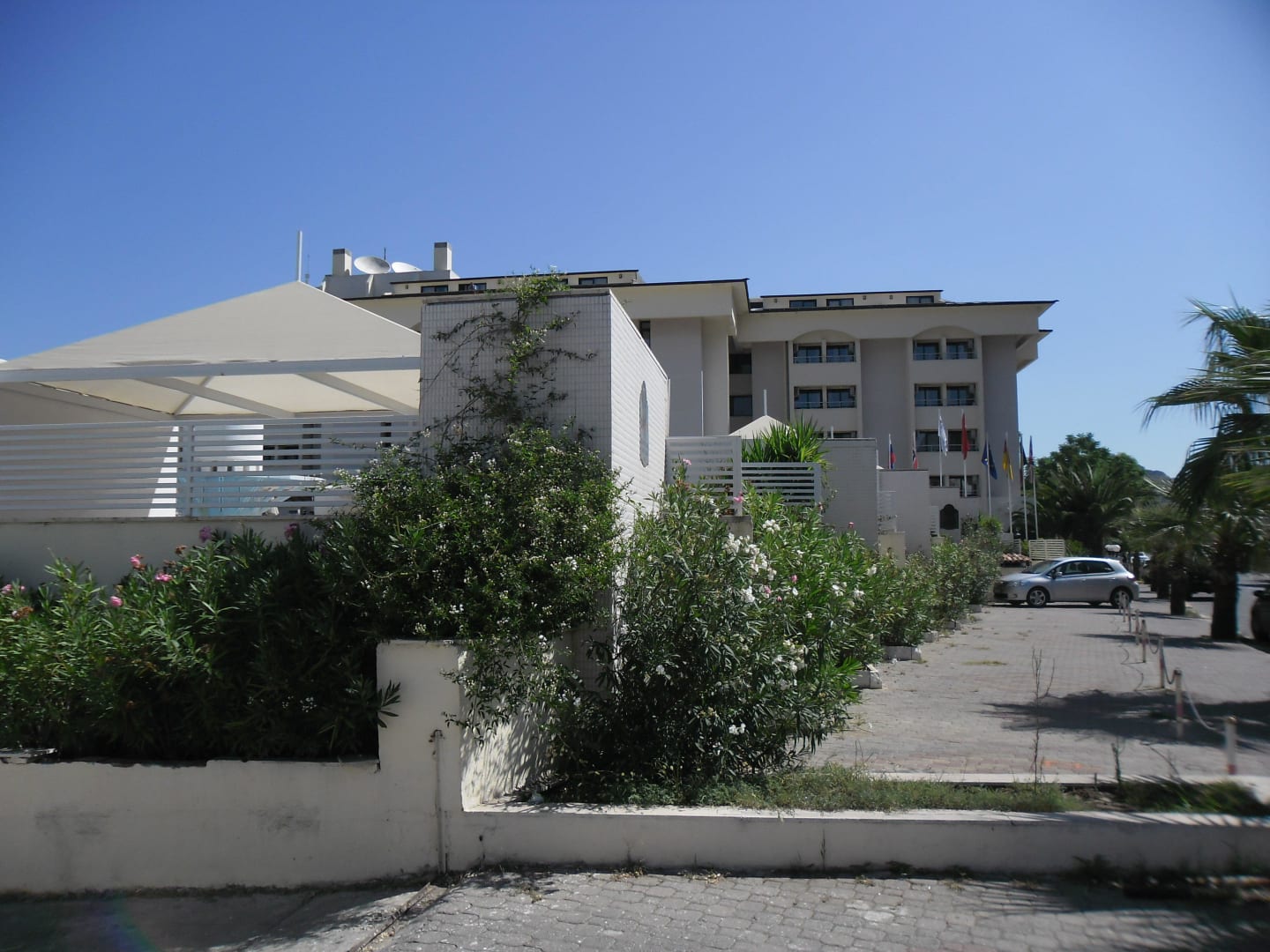 Direkt hinter dieser Mauer befindet sich der Pool