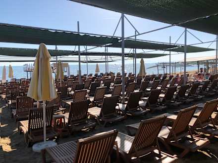 StrandLiegen am Strand, dicke Auflagen sind vorhanden und werden gebracht sobald man sich eine Liege ausgesucht hat