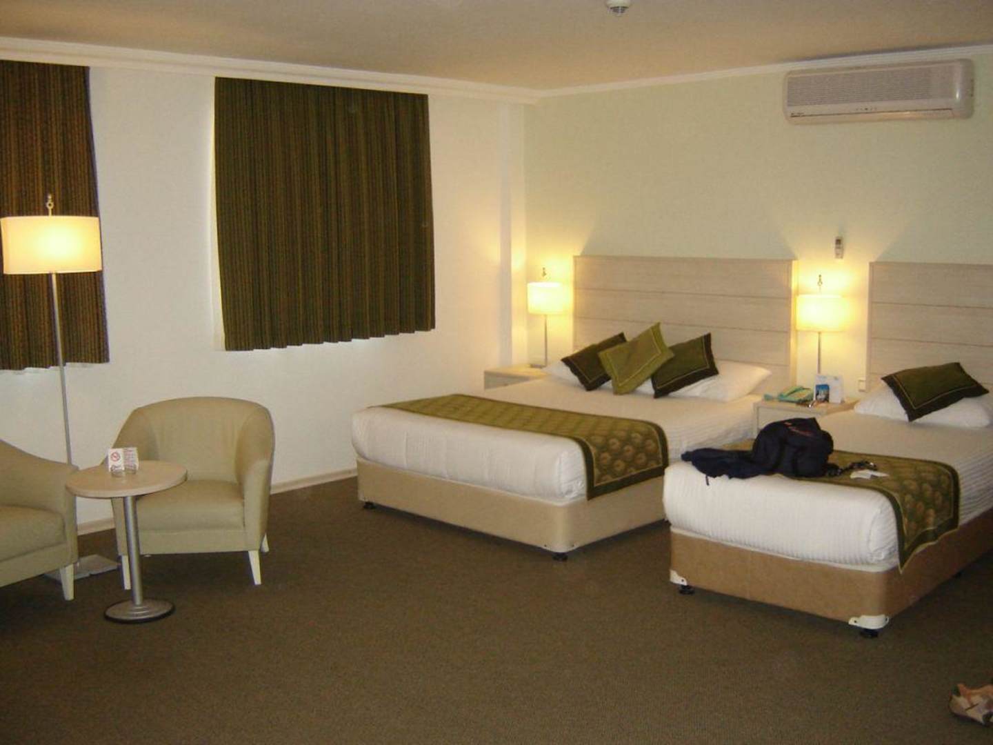 3 (Doppelbett und Einzelbett) von 5 Betten im Familienzimmer, welches richtig groß ist und in der Mitte zum Tanzen einlädt...;-)