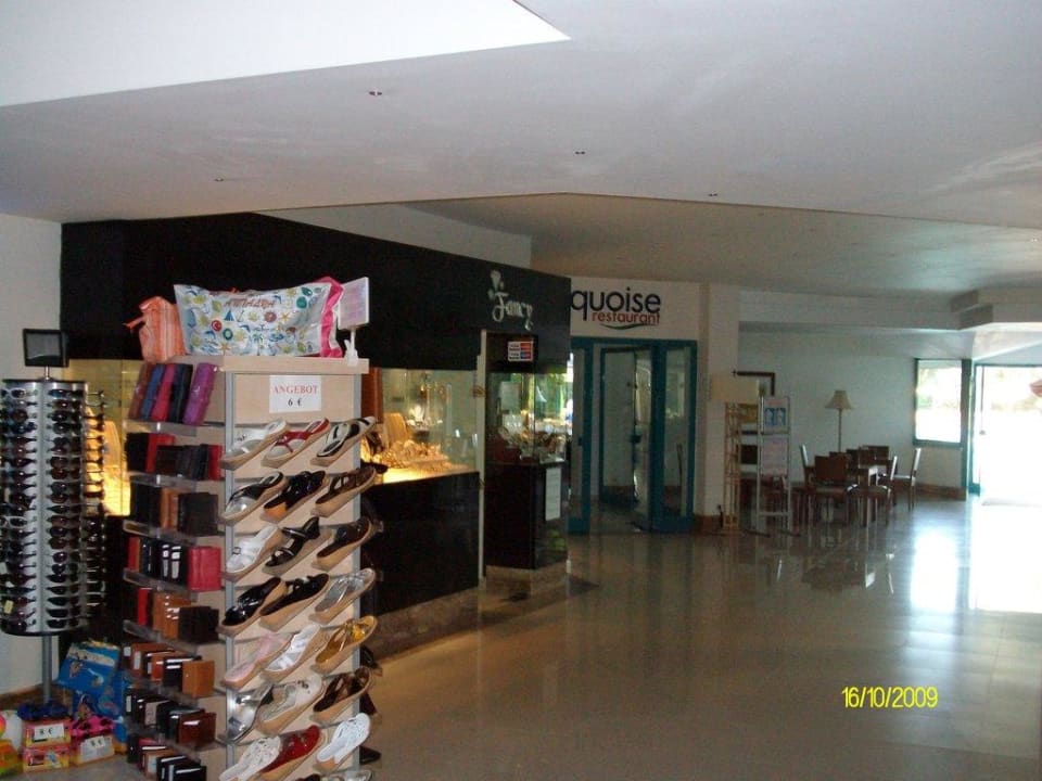 Vom Fahrstuhl aus auf das Hauptrestaurent, links der Juwelier.