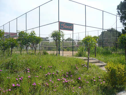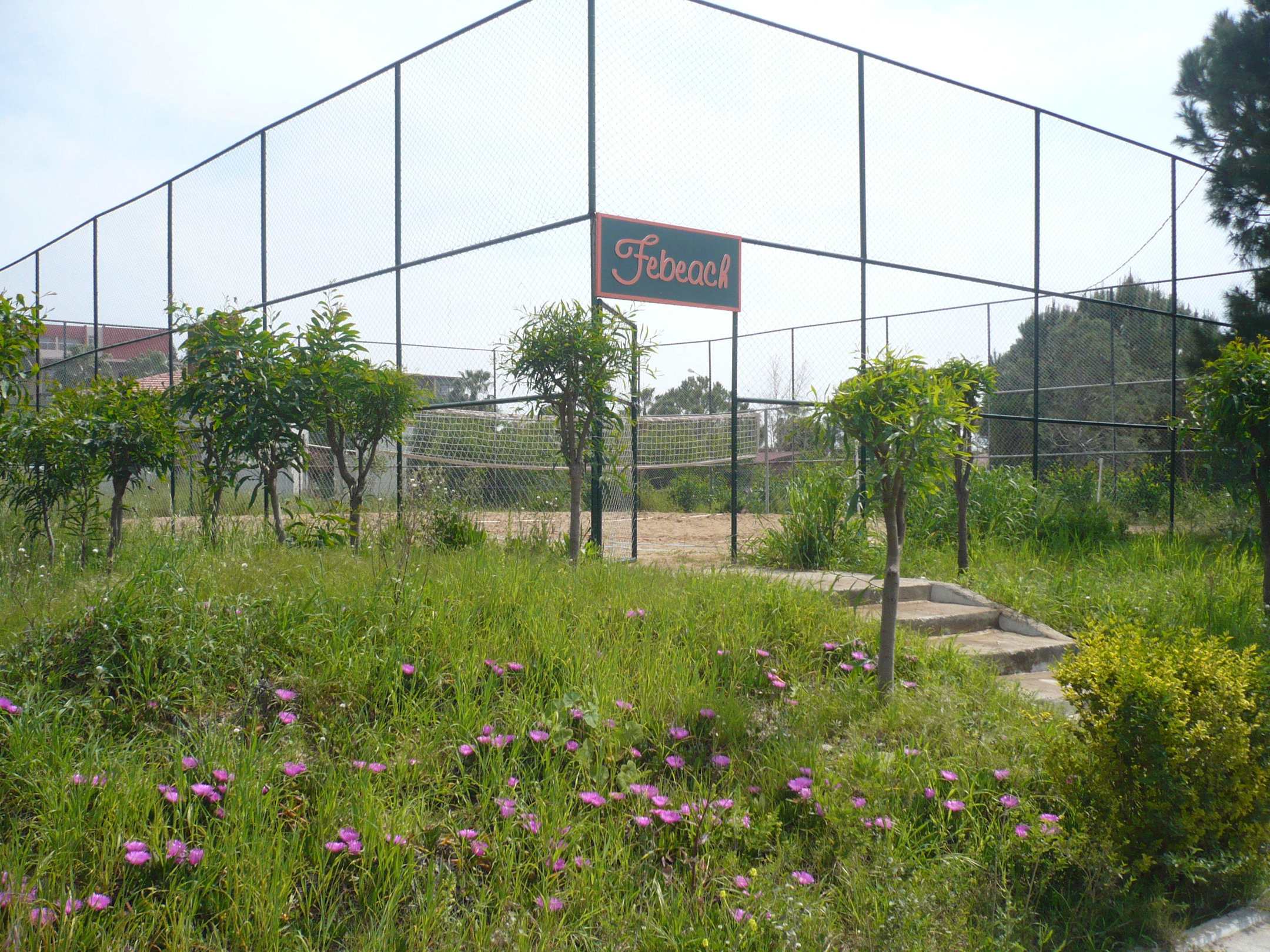 Das Volleyballfeld liegt eingezäunt zwischen dem Hotel und dem Strand. Sehr ungepflegt.