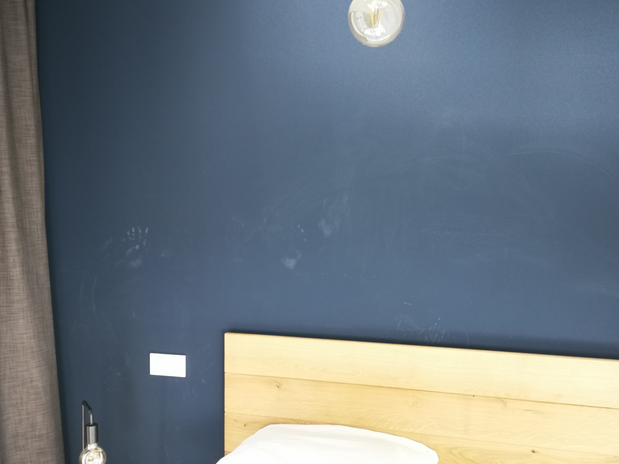 Abdruck einer Hand von gegenüber liegender Betonwand.