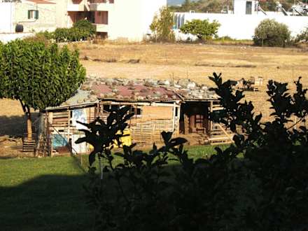 IdyllischAusblick vom Balkon auf Ziegen-, Schafe- und Hühnerstall. Die Tiere weideten bis Nahe am Balkon. Geruchsbelästigung inklusive