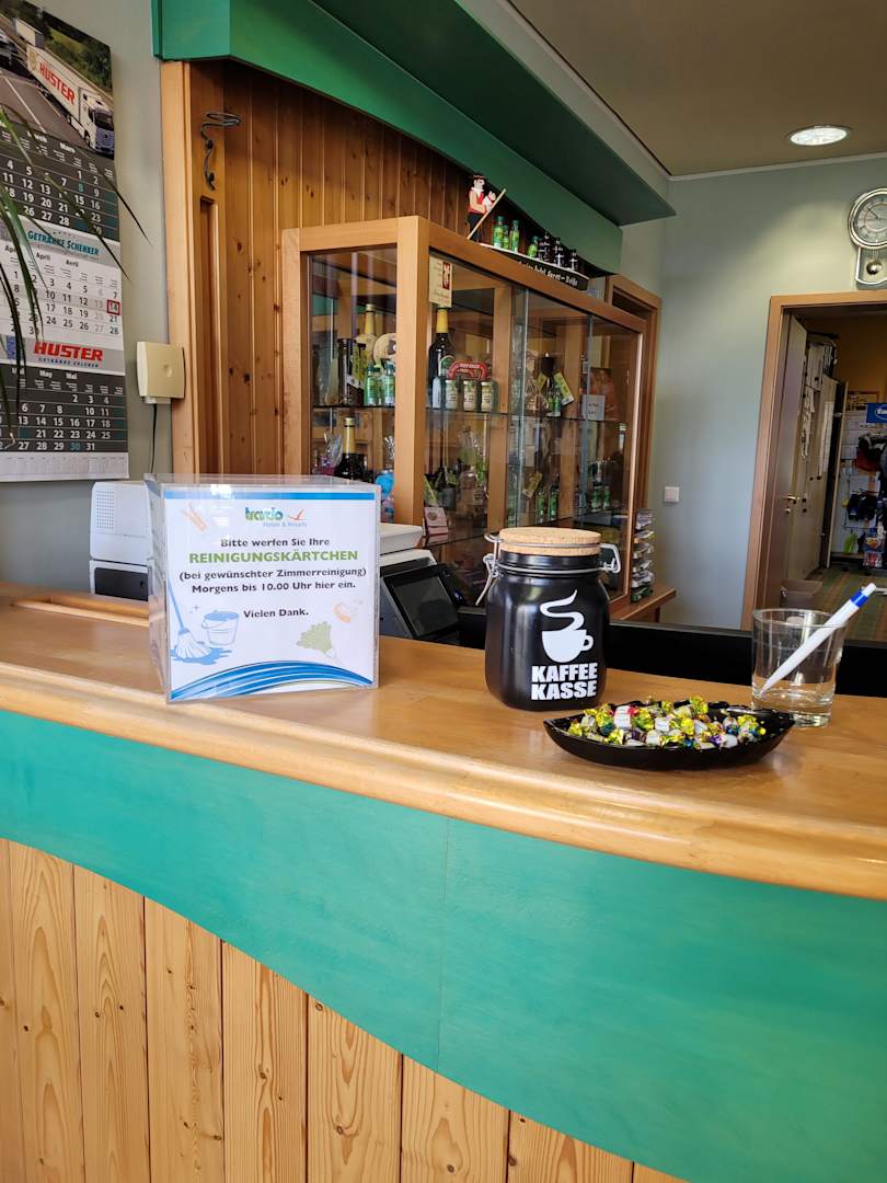 An der Rezeption ist ein Reinigungskärtchen einzuwerfen wenn man Zimmereinigung wünscht.