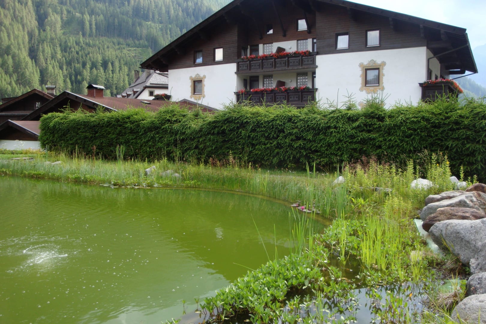 Schwimmteich hinter dem Haus
