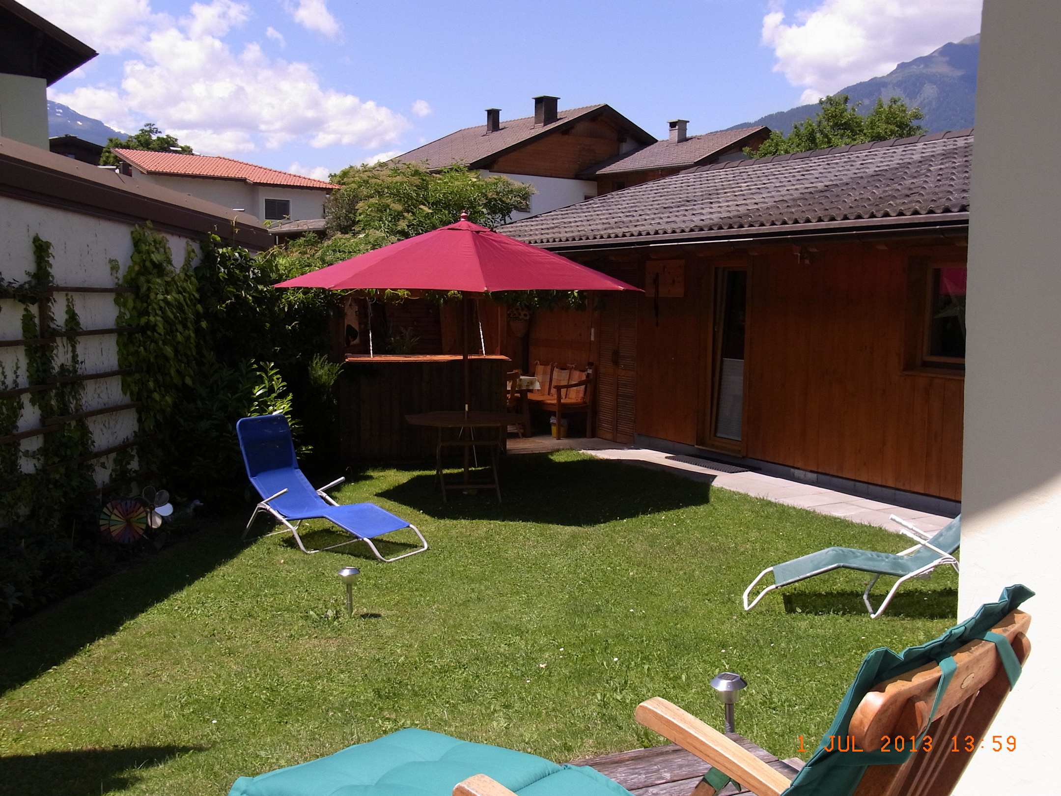 Garten, hinter dem Haus, mit der Gartenlaube