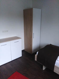 Schlafzimmer mit 2 Einzelbetten, Kleiderschrank und Kommode
