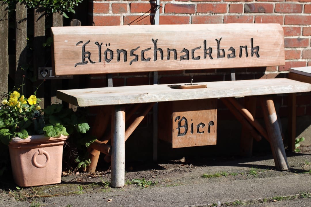Eine von vielen Sitzgelegenheiten -die Klönschnackbank ist immer mit Bier gefüllt.