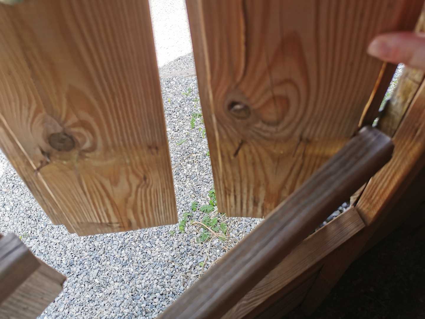 Kapputes Kinderhäuschen mit den abstehenden Nägel