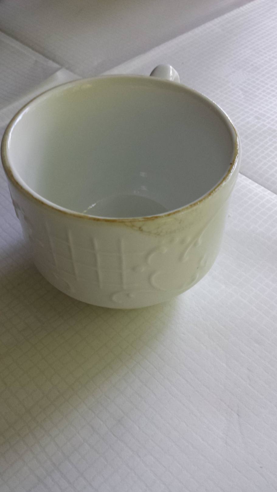 Kaffeetasse beim Frühstück dreckigAls wir an unserem Frühstückstisch angekommen sind, der natürlich Reserviert war, fanden wir unser Geschirr so vor.