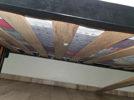 Kaputter Lattenrost sowie Kaugummis unter den Betten.