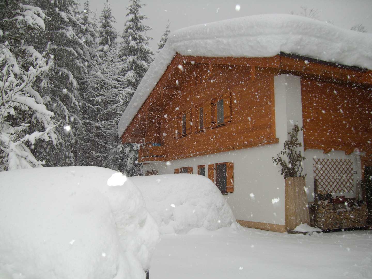 Schneegestöber hinter dem Haus