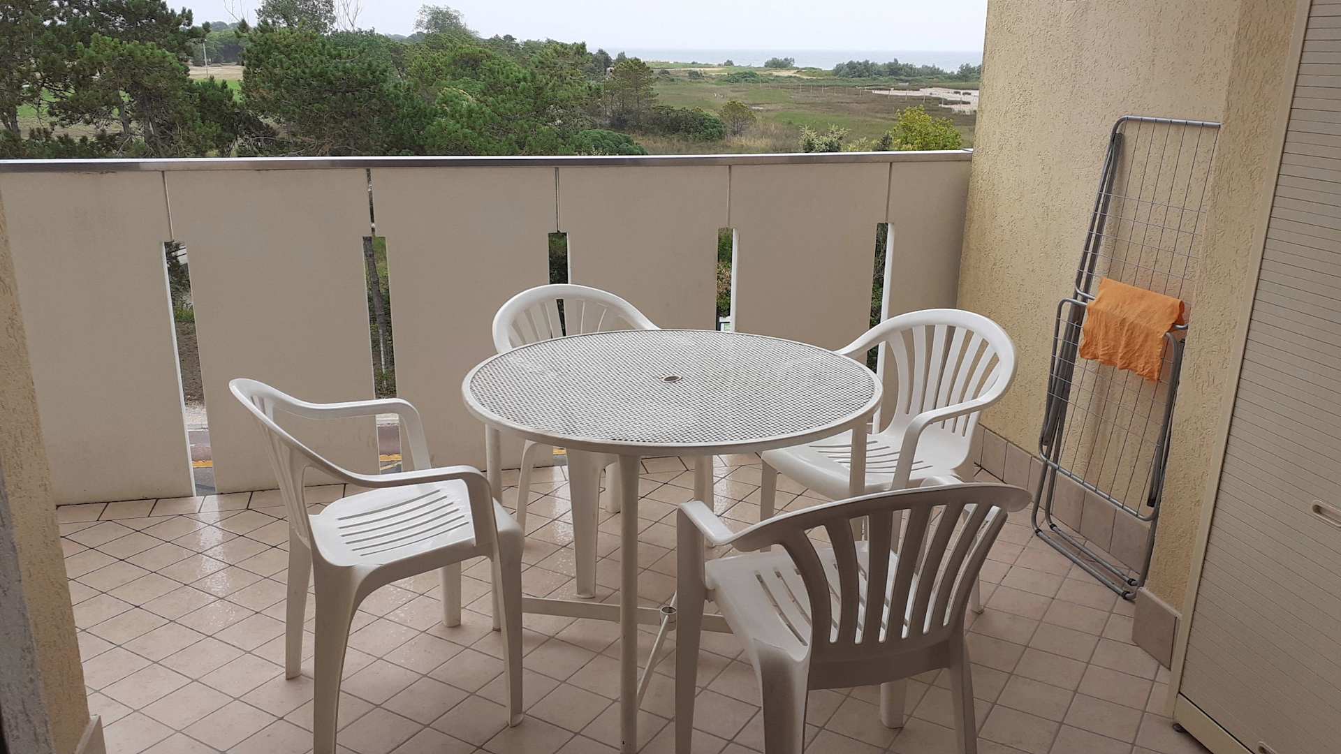 AusblickDas ist die Westseite. Im Einzelfall war es draußen zum Frühstücken trotz Schirm schon zu heiß. Ansonsten aber sehr schön.