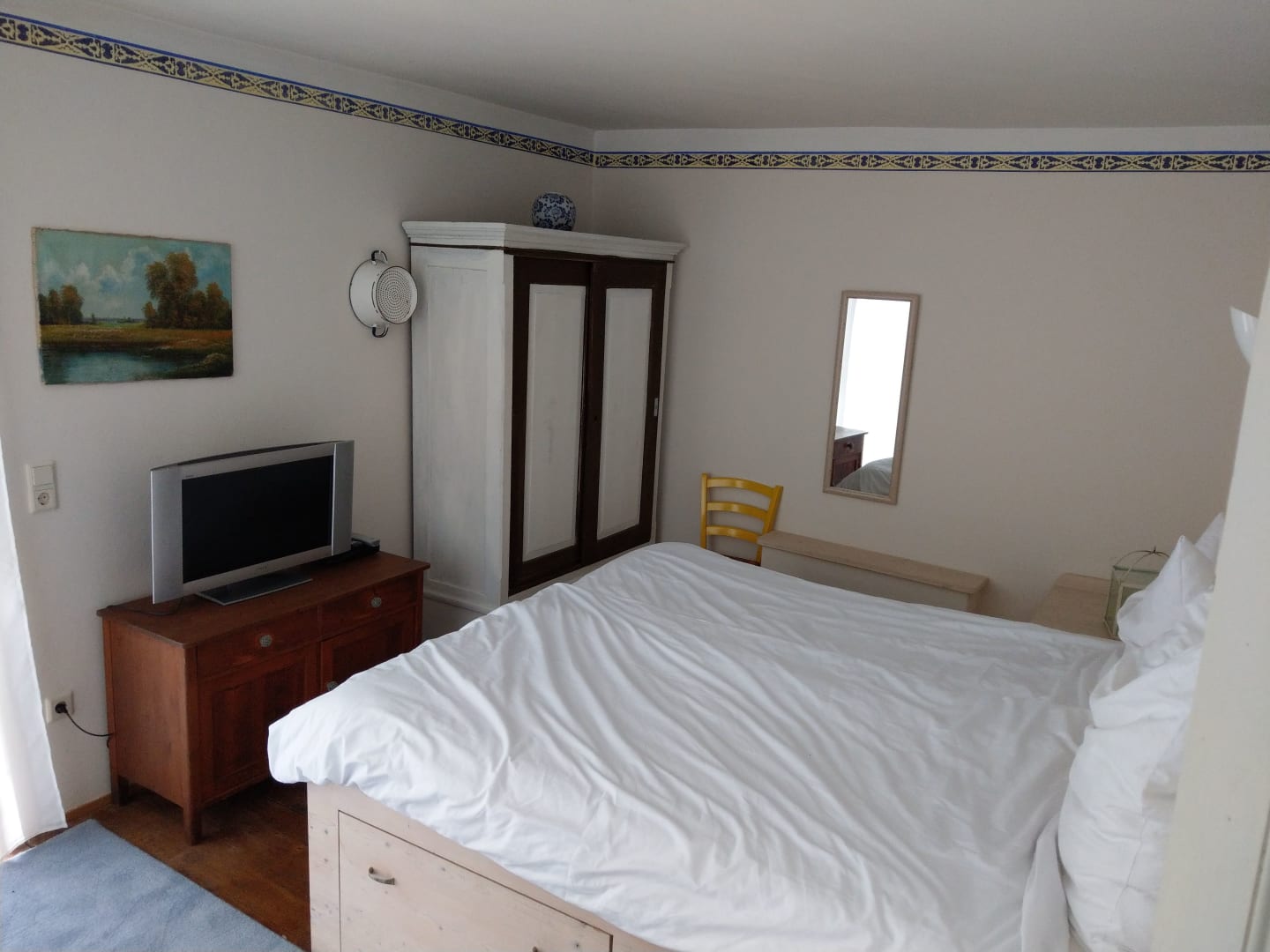 Schlafzimmer mit einem geschreinerten Bettkasten