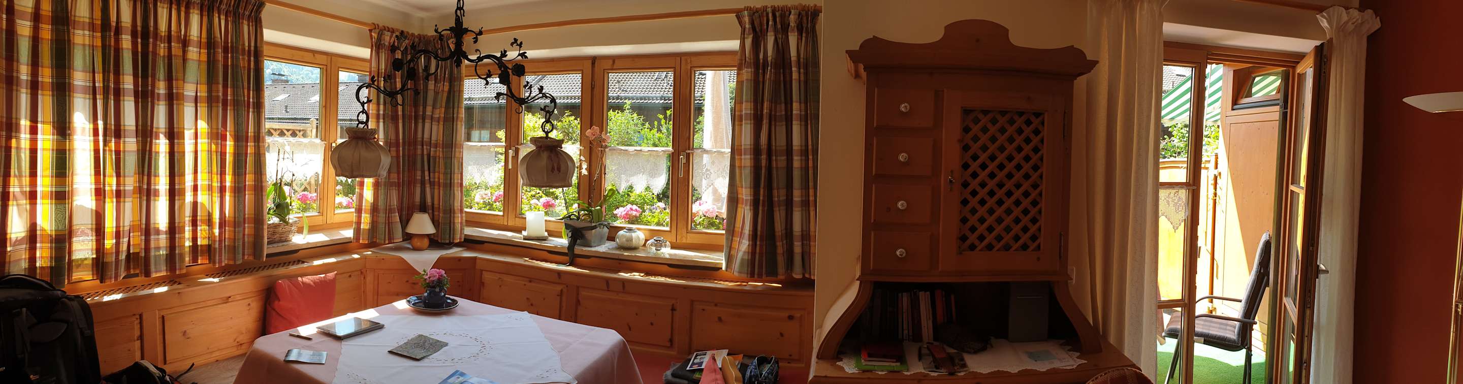 Panoramafoto von Eckbank und Tür zum Garten
