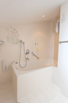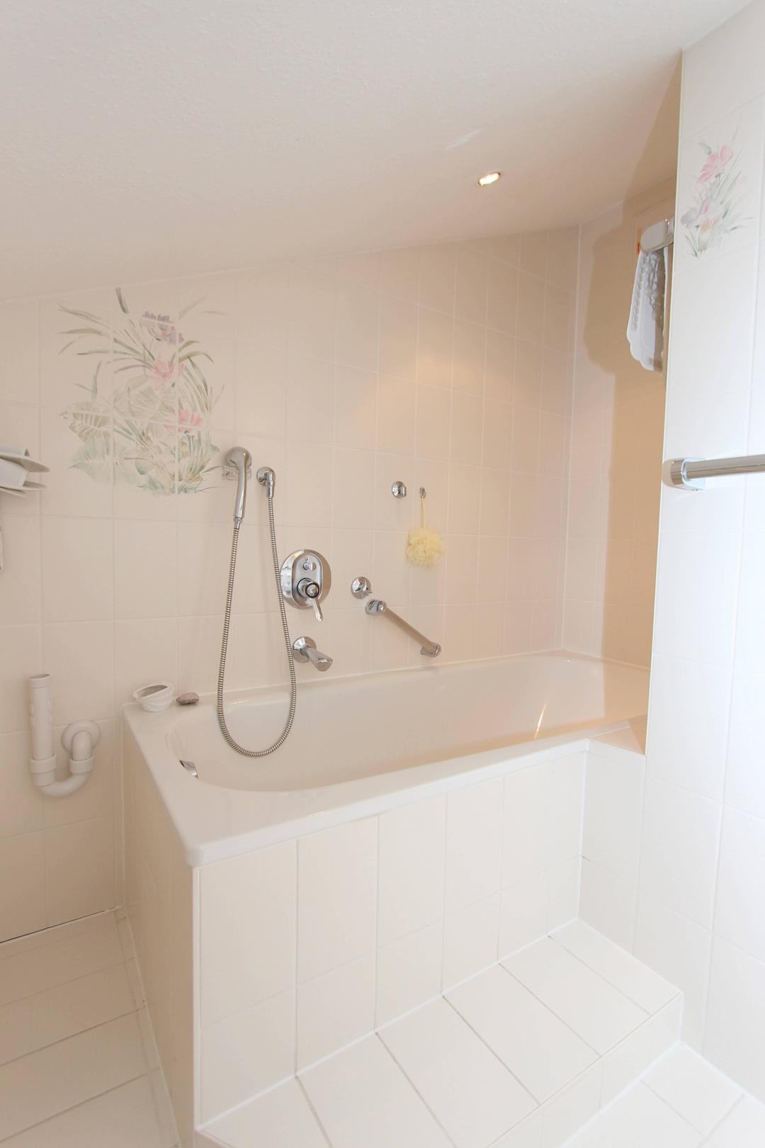 Badezimmer mit Badewanne und Duschvorrichtung