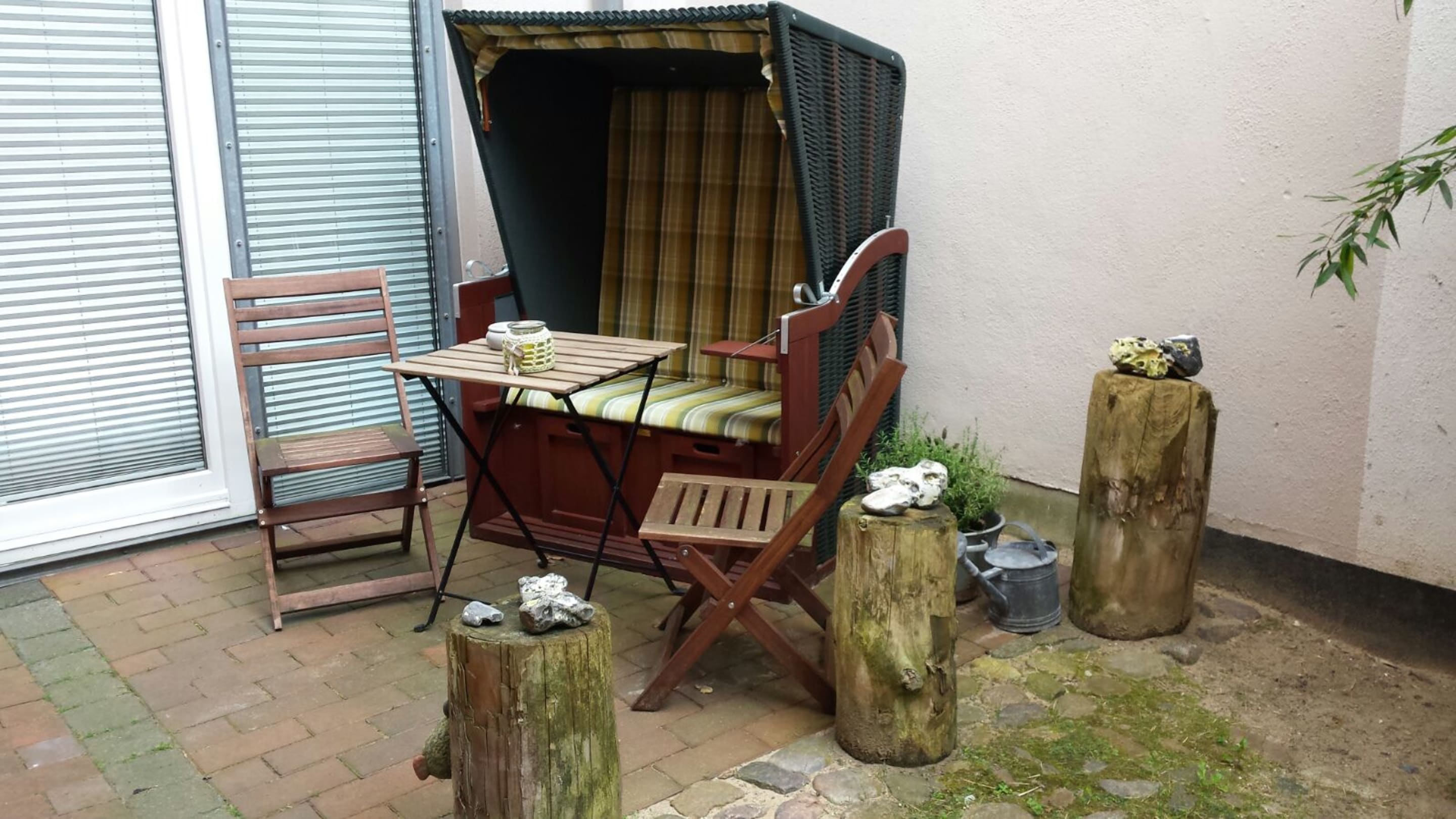 Der zur Fewo gehörende Strandkorb lädt zum Verweilen ein.