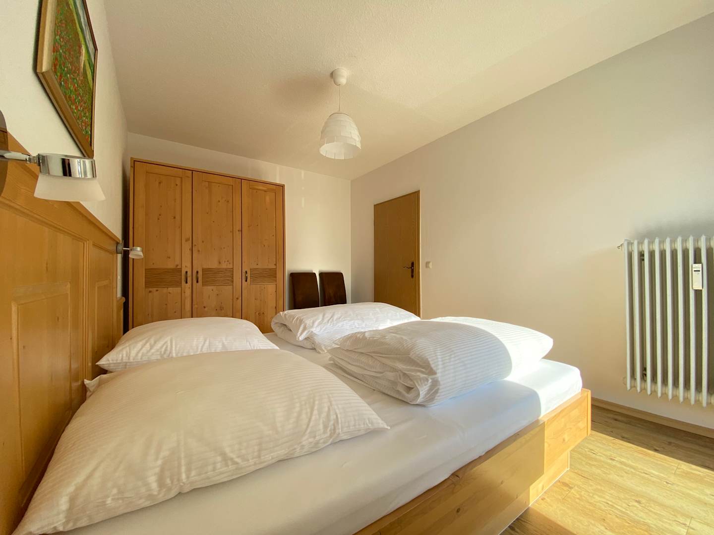 Schlafzimmer mit Doppelbett auch nach hinten raus zum Balkon