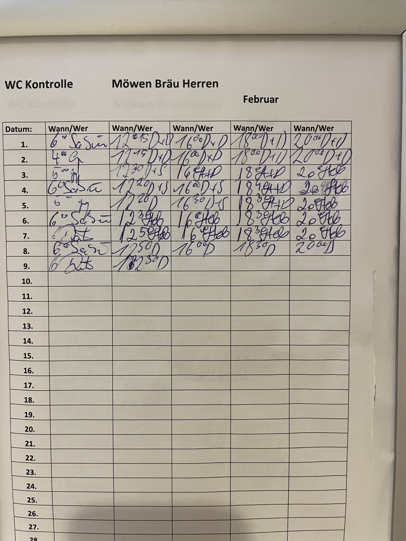 Restaurant Mövenbräu: die hier dokumentierten Kontrollen wurden nicht wirklich durchgeführt, Seife z.B. wurde nie aufgefüllt. Trotz mehrfachen Hinweis. Pfui.