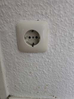 Steckdose in der Küche ohne Kindersicherung. Was die Fußleiste nicht schafft, erledigt dann die Steckdose.