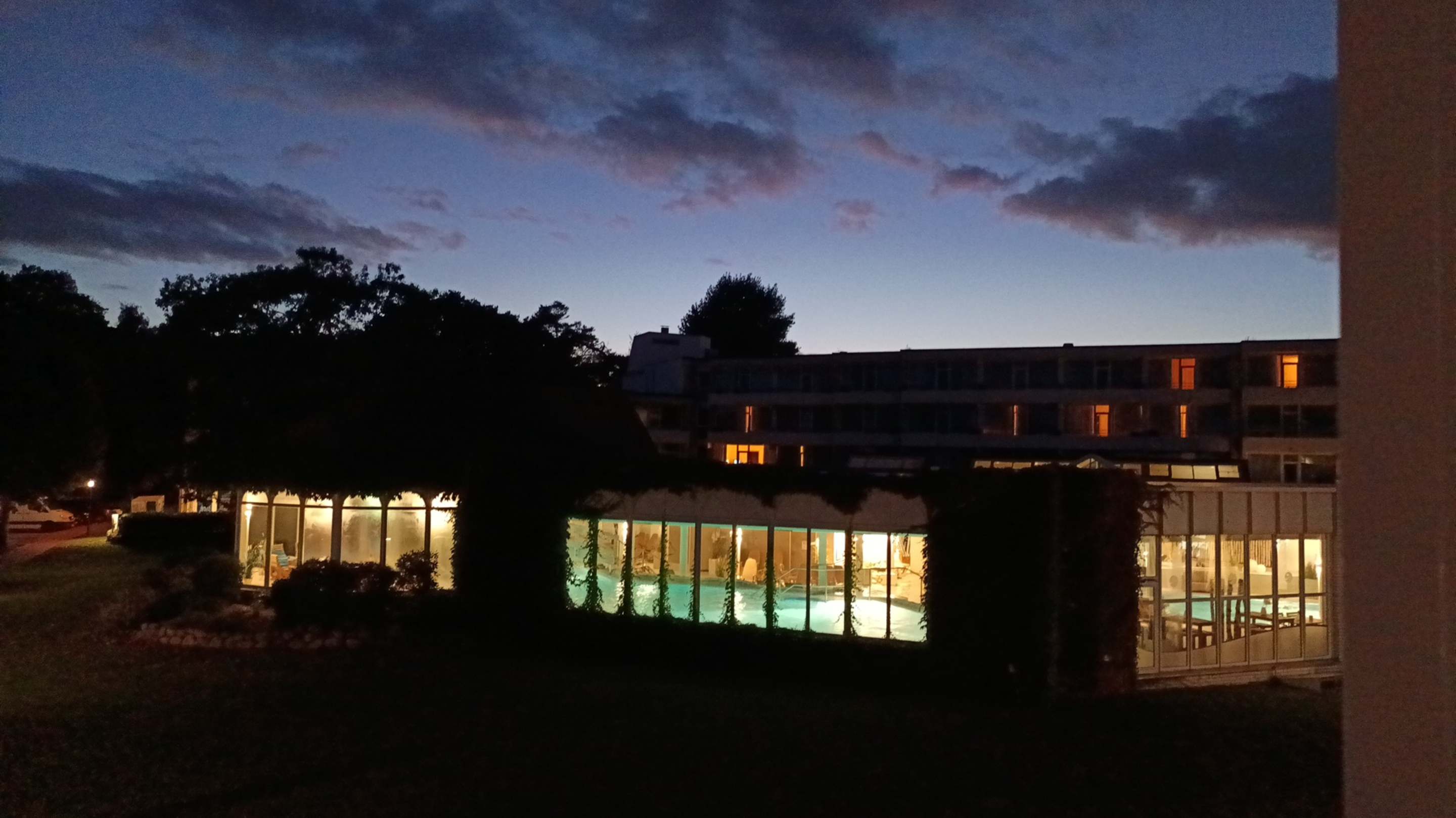 Stimmungsvolle Beleuchtung im Dünenbad