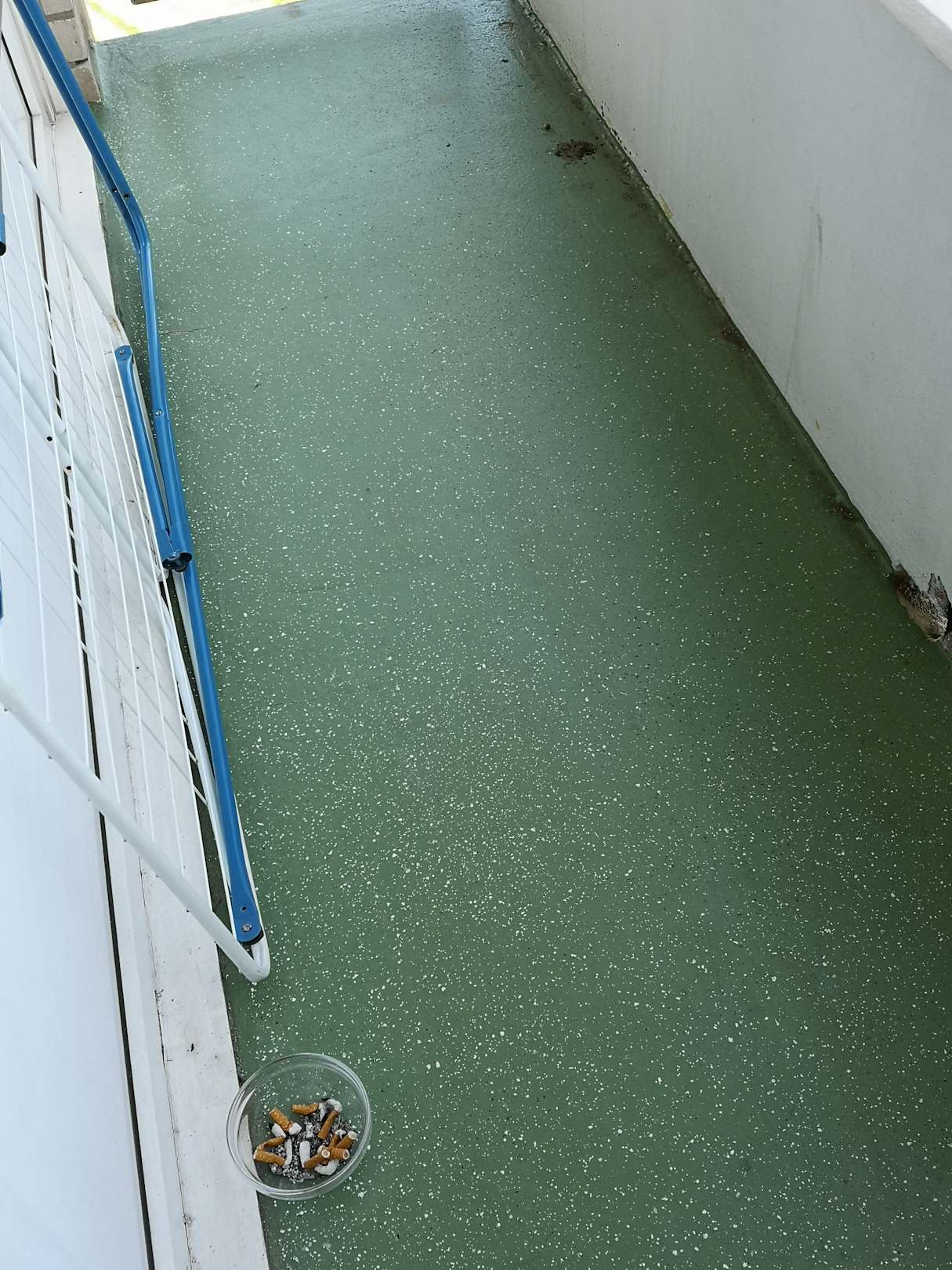 Und als Nichtraucher mit einem vollem Aschenbecher auf dem Balkon begrüßt zu werden ist klasse. Die Vormieter haben sich auf dem Balkon offensichtlich auch die Zehennägel geschnitten. Da kommt Freude auf. Genutzt haben wir den Balkon nicht.