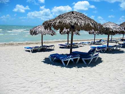 Liegen und Schirme am Hotel-Strand