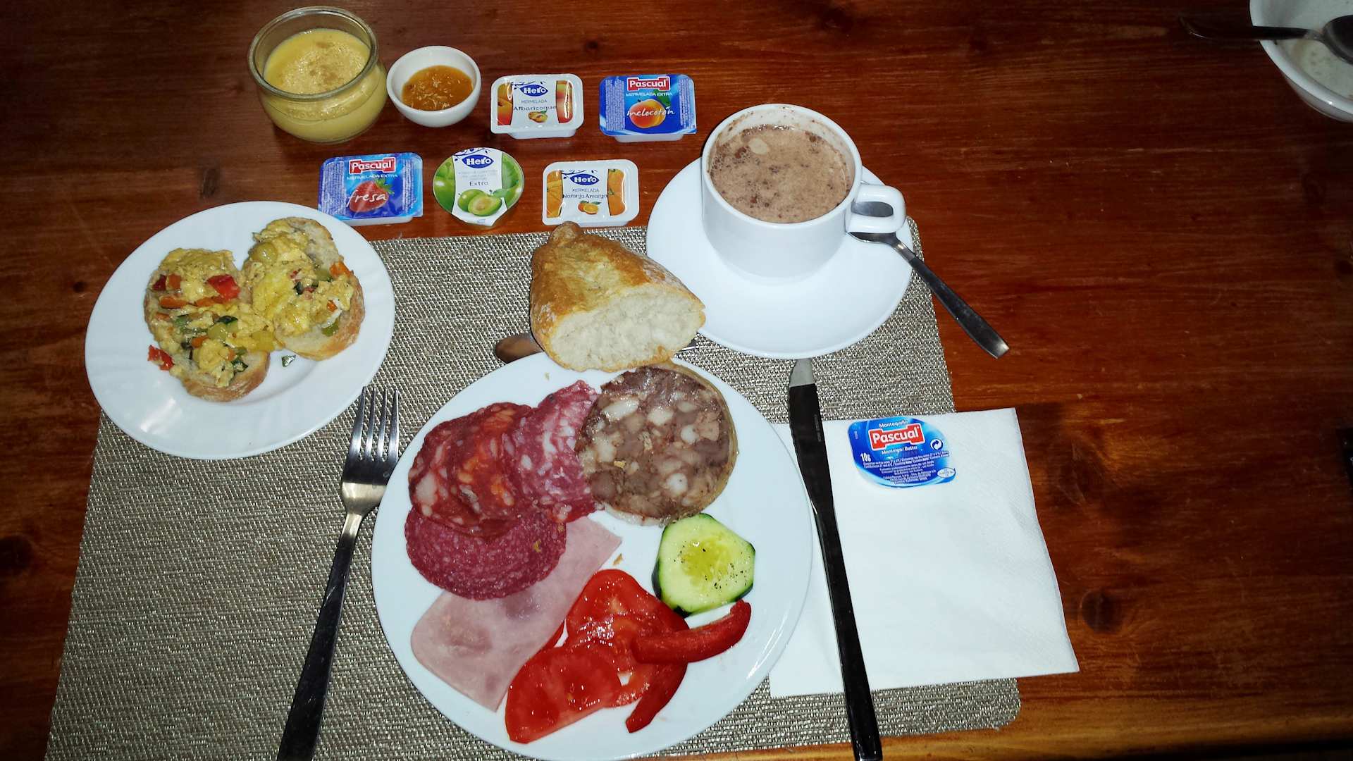 2018: Kleine Auswahl vom neuen Frühstücksbuffet. Dieses Jahr wurde mit Konfitüren-Portionspackungen experimentiert. Sie haben sich zum Glück nicht bewährt, im Jahr darauf gab es wieder offene Selbstgemachte.