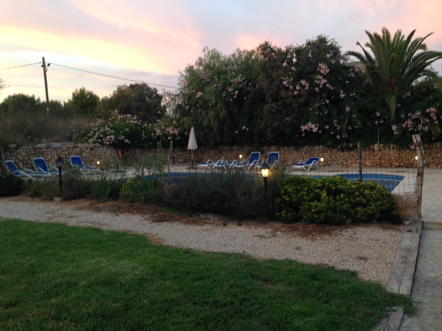Pool Garten bei Abendstimmung.