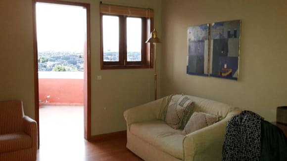 Blick vom Bett zur Terasse