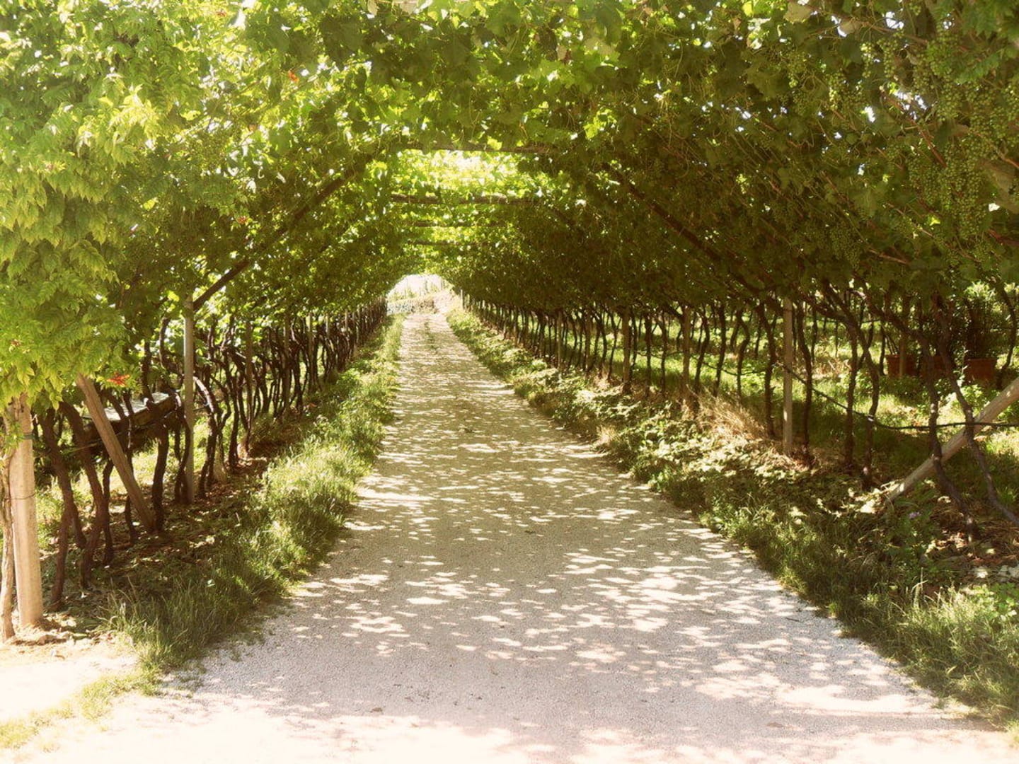 Fahrt durch den Wein zum Finkenhofüber den Privatweg unterm Wein hindurch gings zum Haus