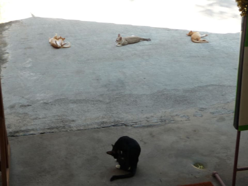 Katzenfamilie im Restaurant