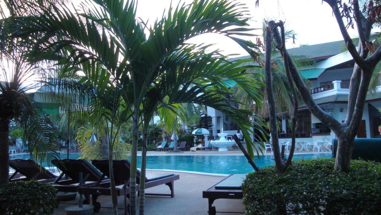 Blick vom Bungalow auf den Pool