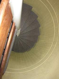 Glogghuis, Abgang zum Zimmer 12Über diese enge Wendeltreppe ohne Handlauf geht es hinunter zum Zimmer 12 im Hotel Glogghuis.