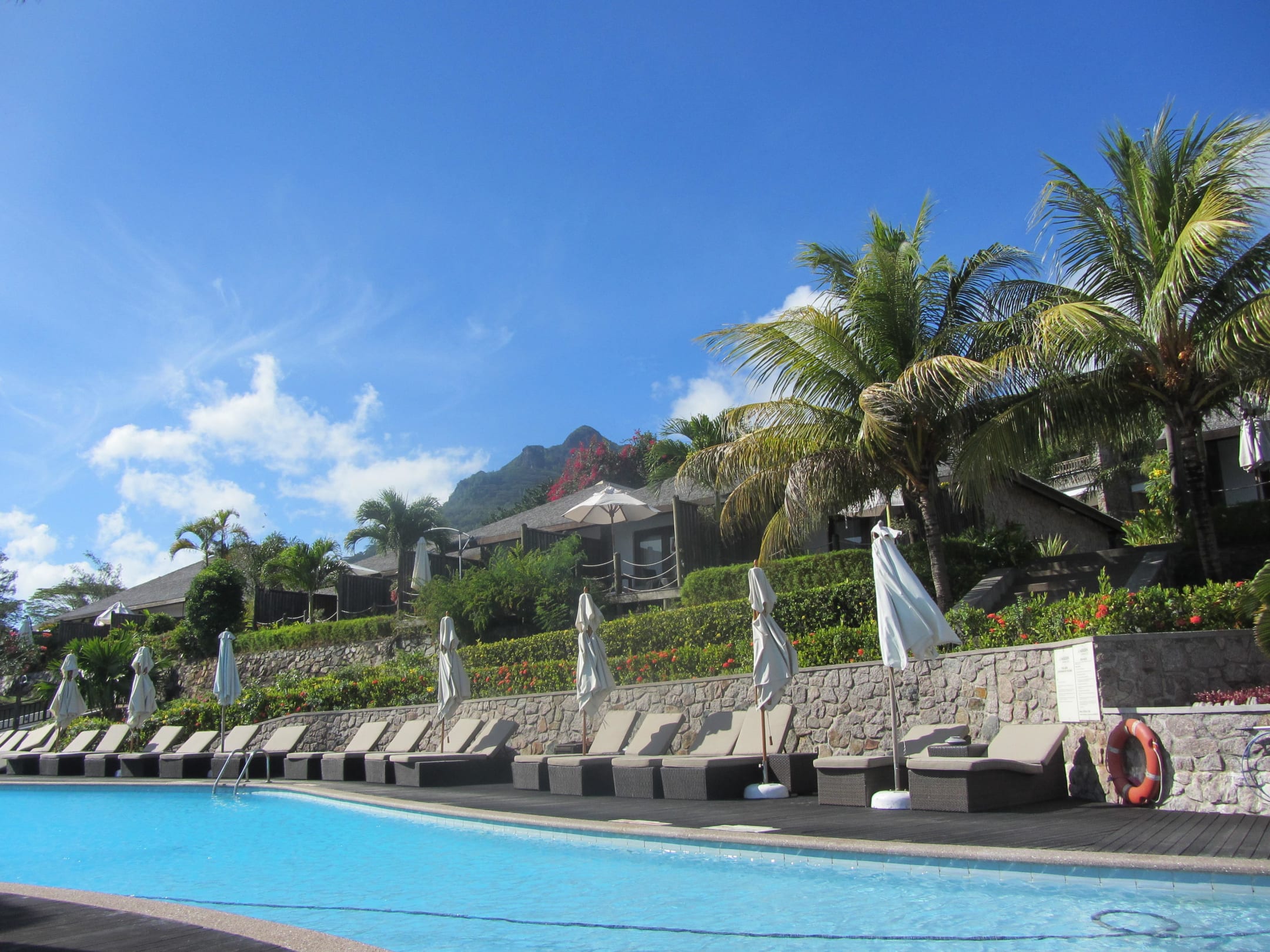 Pool mit Bungalows und Garten