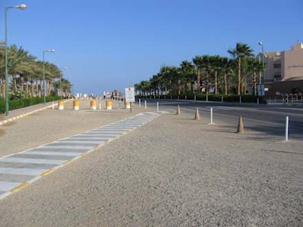 Die Straße, die die beiden Gebäude voneinander trennt bzw. die überquert werden muss, wenn man im oberen Teil wohnt und zum Strand will.