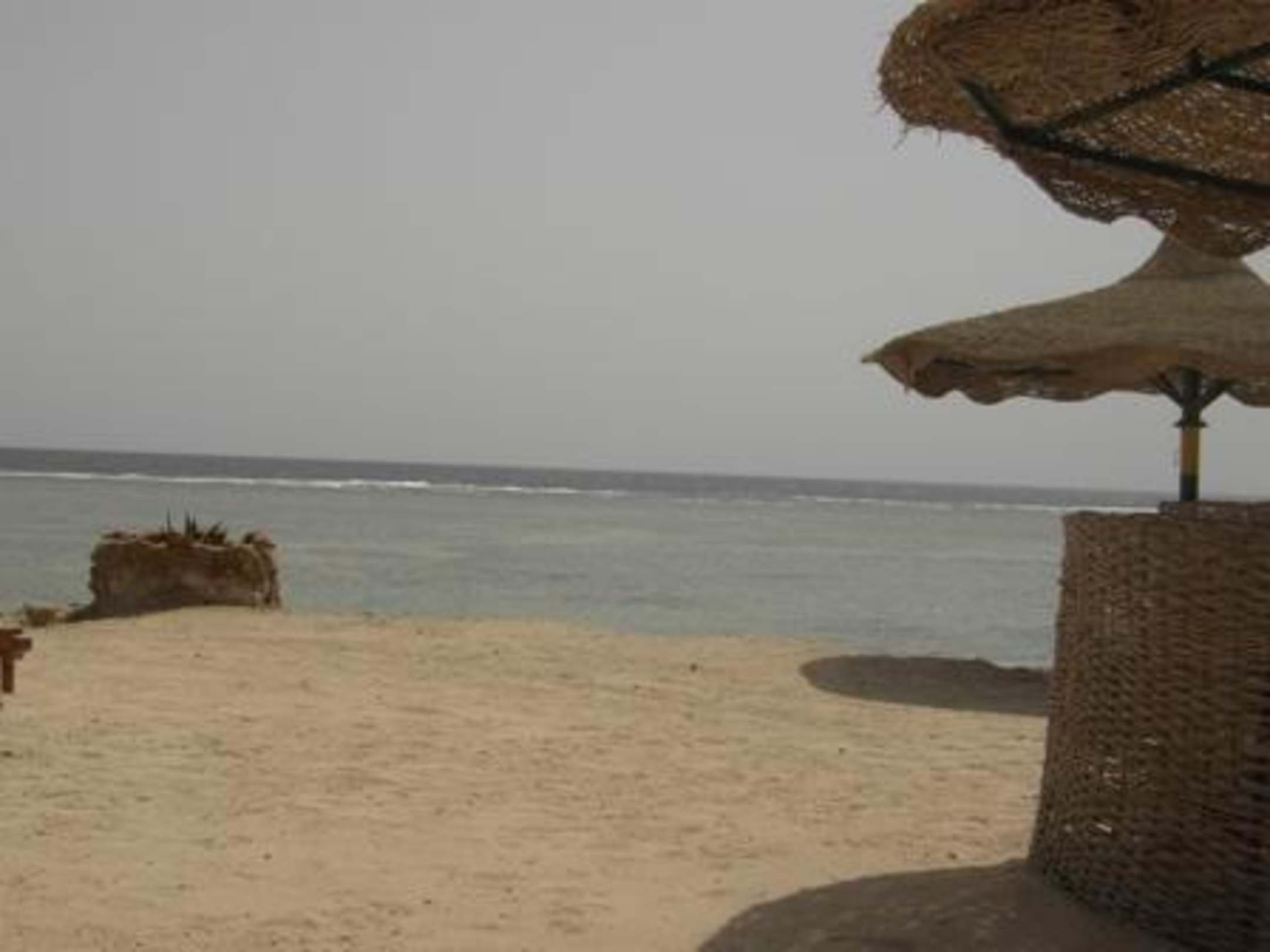 StrandDer Stran mit Blick aufs Meer. Rechts sieht man die Sonnenschirme sowie den Windschutz.