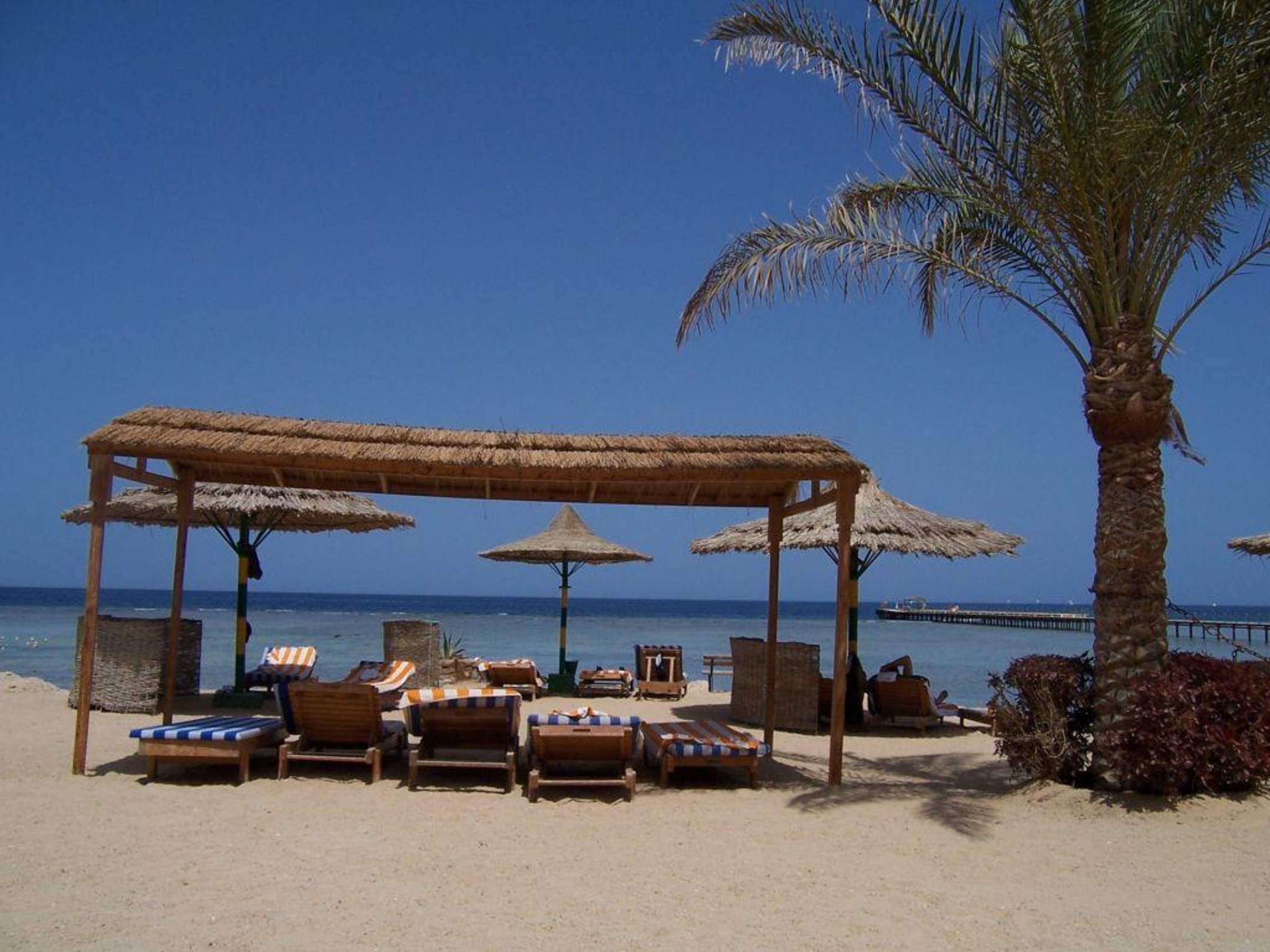 HotelstrandDer Hotelstrand. Leider kann man hier nicht direkt ins Meer, sondern muss über den Steg auf das Riff rauslaufen.