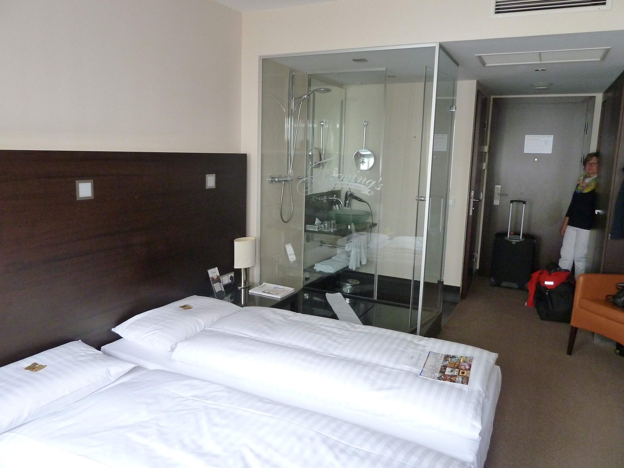 Zimmer nach Ankunft mit Dusche mittendrin