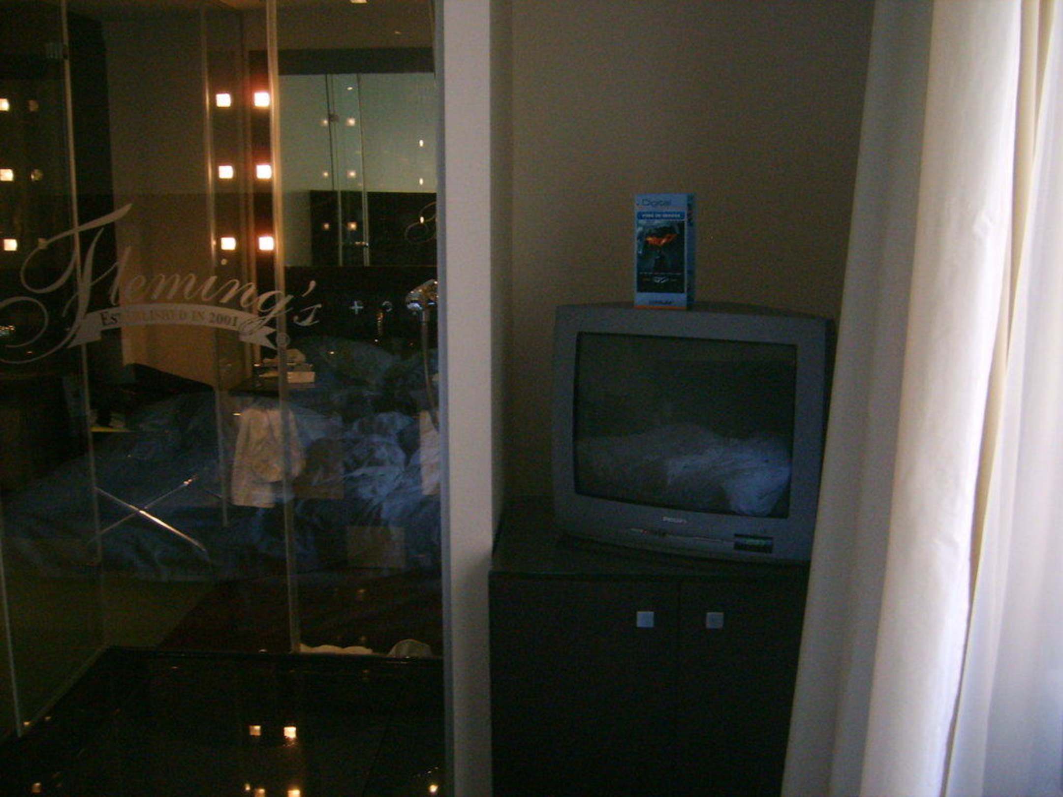Links Dusche - rechts TV Flemings Hotel Wien-Stadthalle