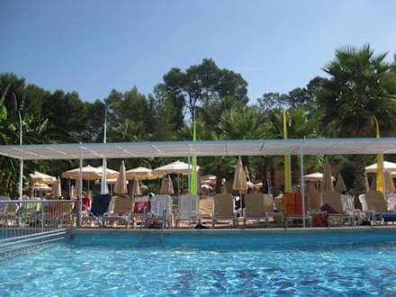 Überdachte Liegeplätze am Pool