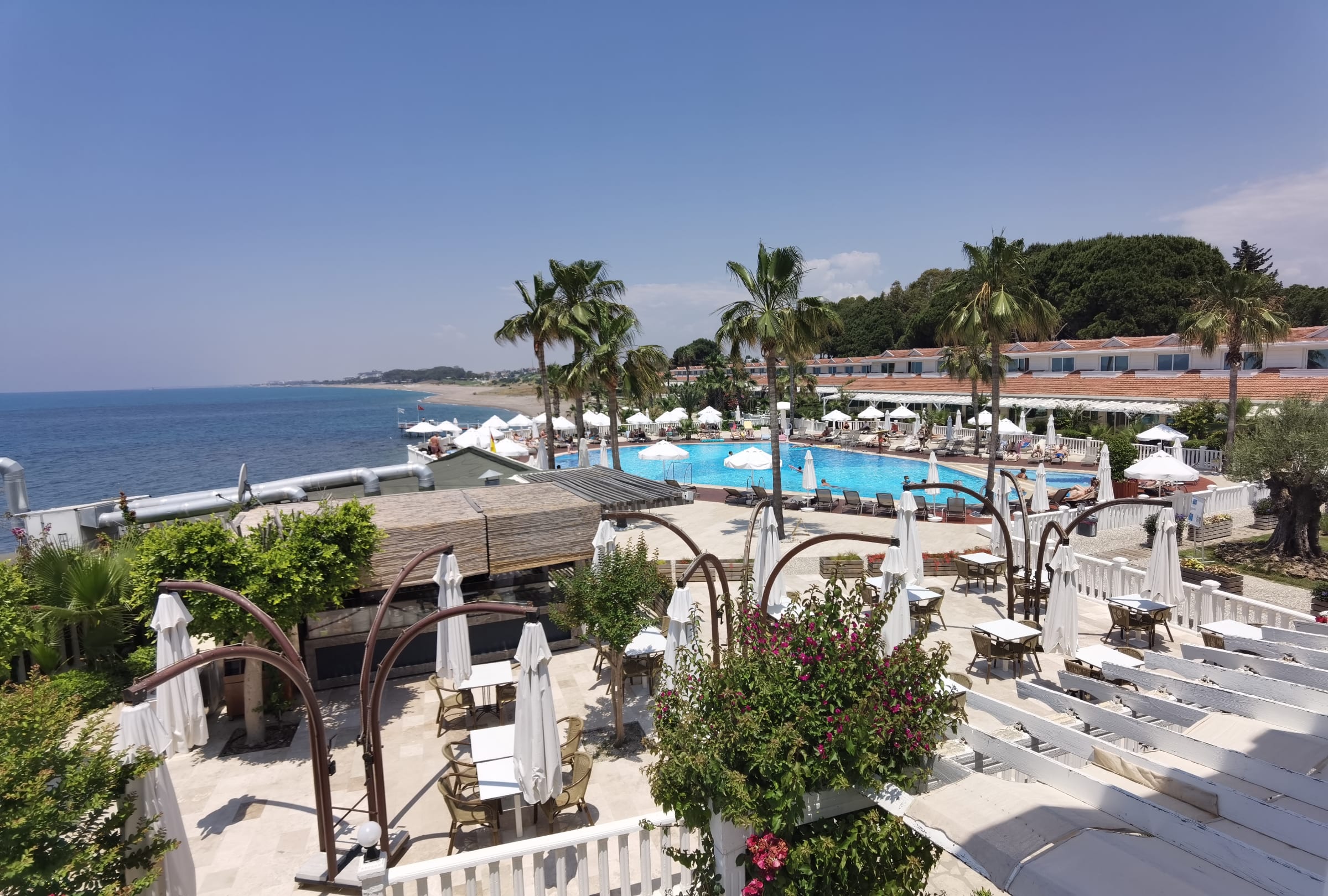 Blick von der Außenterrasse der Piano-Bar auf den Hauptpool