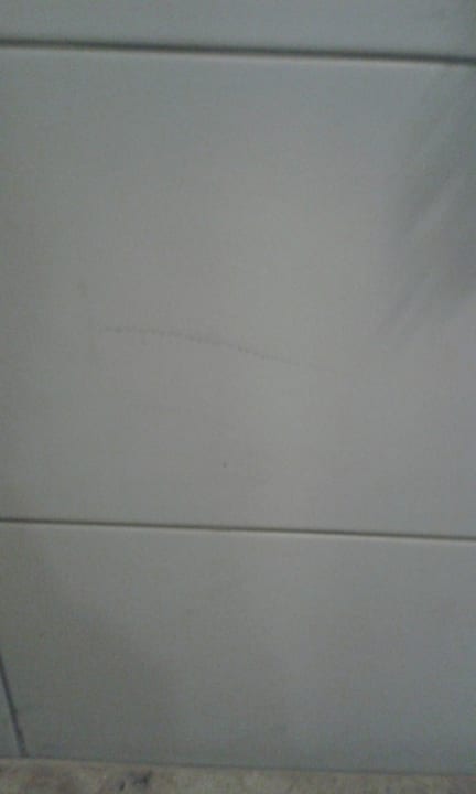 Fliesenschild im Bad bei Ankunft dreckig.