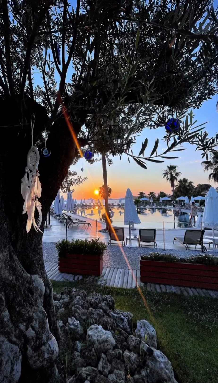 Hotelpool bei Sonnenuntergang