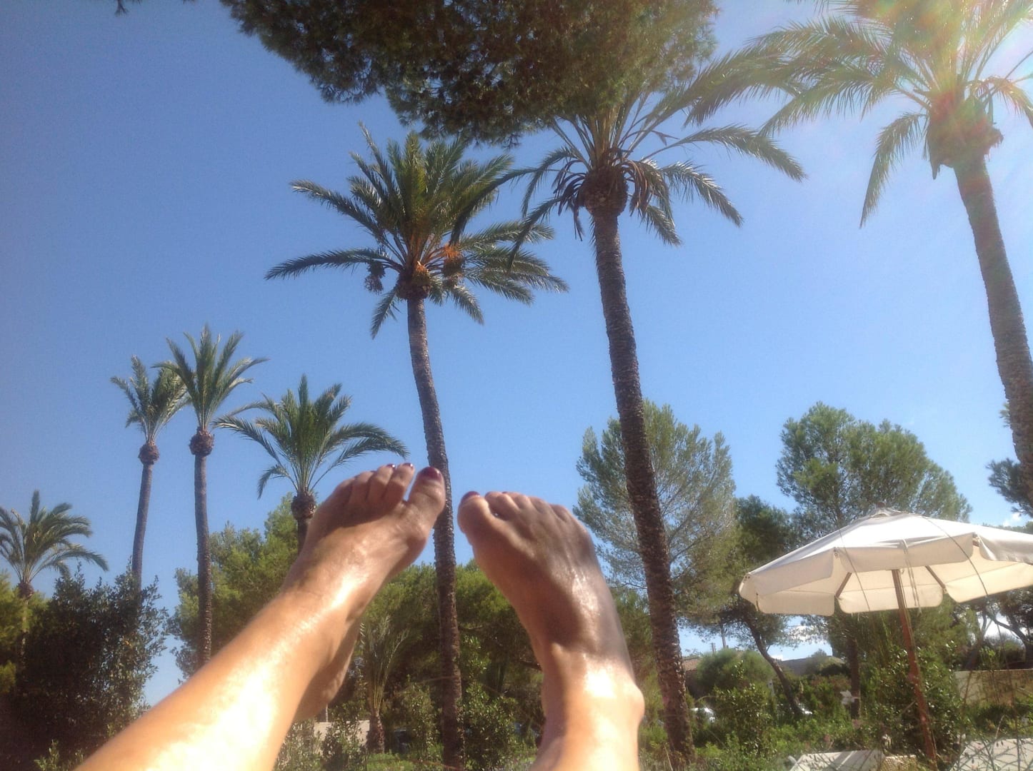 Blick von der Poolliege zu den Palmen